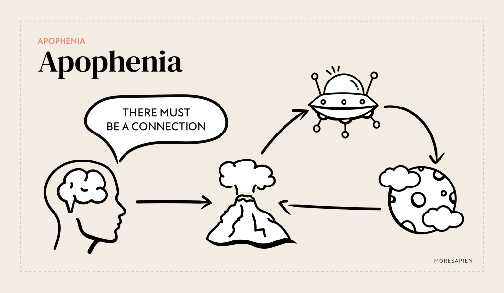 This, fundamentally, is apophenia: the brain’s instinct to impose order on disorder, meaning on mess. In 1958, psychiatrist Klaus Conrad1 coined the term to describe the early stages of psychosis—pattern-detection where none exists. But the same cognitive engine drives art, science, and spirituality. As Steven Pinker once noted, “We are pattern-seeking animals, and we are quite adept at telling stories about the patterns we think we see.